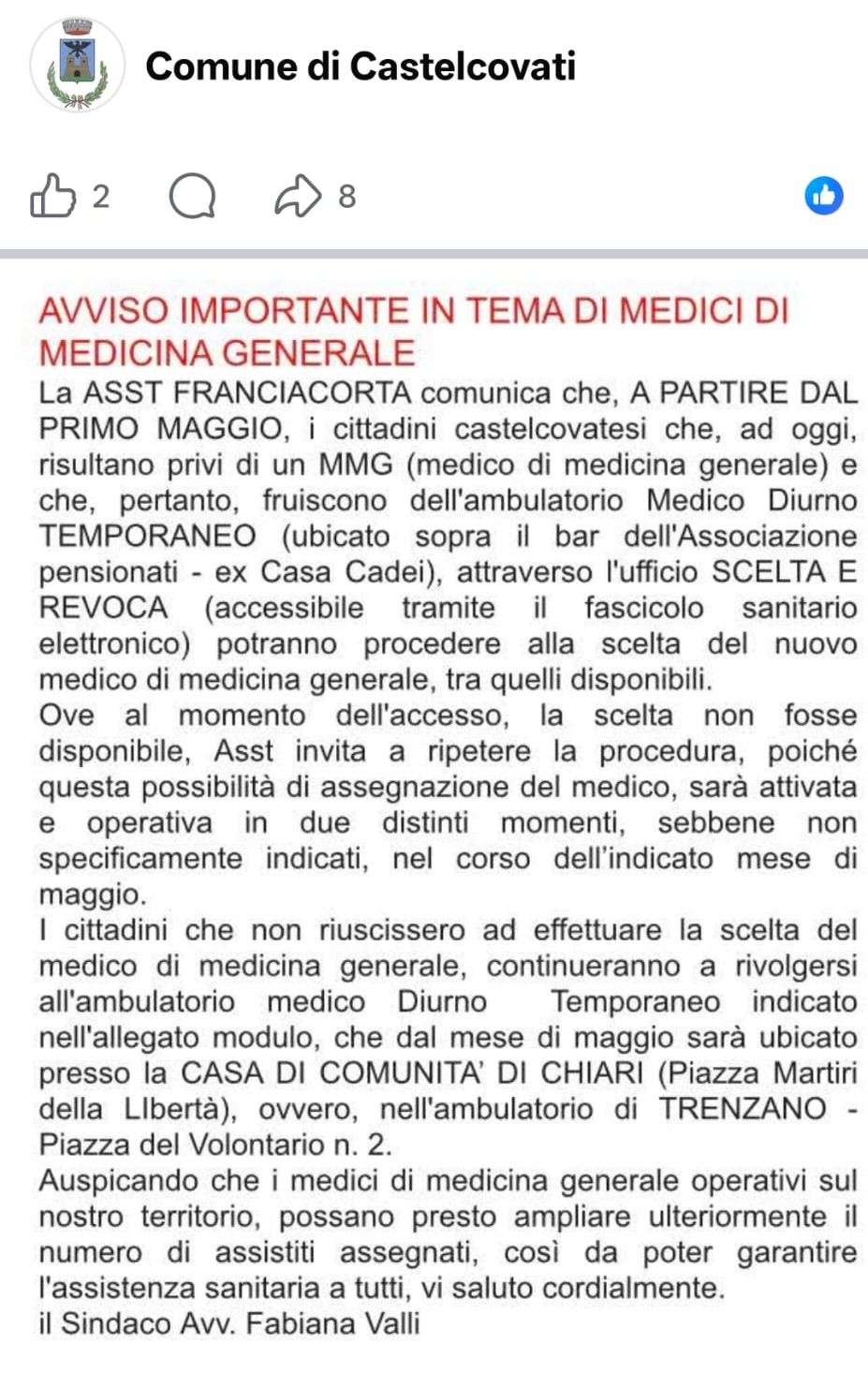 Importante avviso in tema di medici di medicina generale.