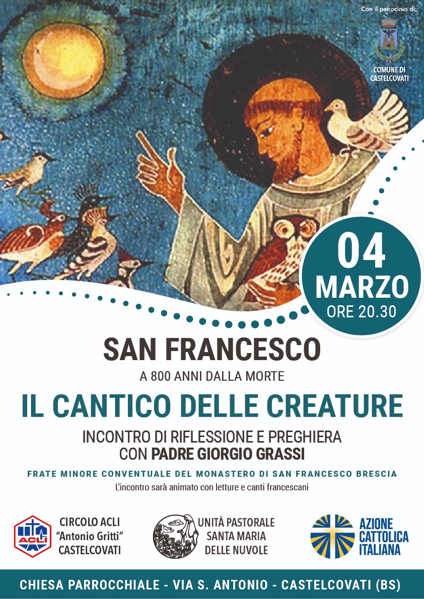 "Il Cantico delle Creature", incontro di riflessione e preghiera per celebrare gli 800 anni dalla morte di S. Francesco con Padre Giorgio Grassi.